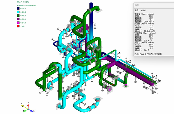 耐震設計基準に基づき、配管系の耐震性能を評価します。